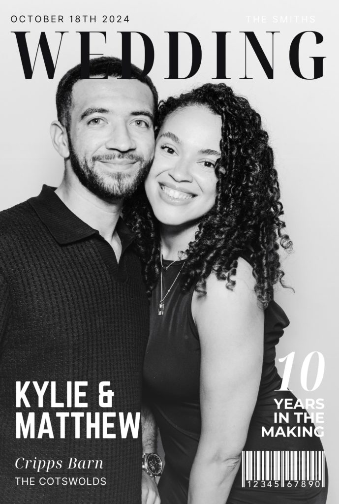 Your wedding, your cover story. The Magazine Booth features exclusive portrait-oriented templates, designed to mimic the front of a high-end magazine—because your big day deserves a headline moment. Each print is customised with your names, wedding date, or special details, creating a keepsake that’s as stylish as it is personal. With a sleek, editorial design and pro-quality finish, these aren’t just prints—they’re collector’s items.