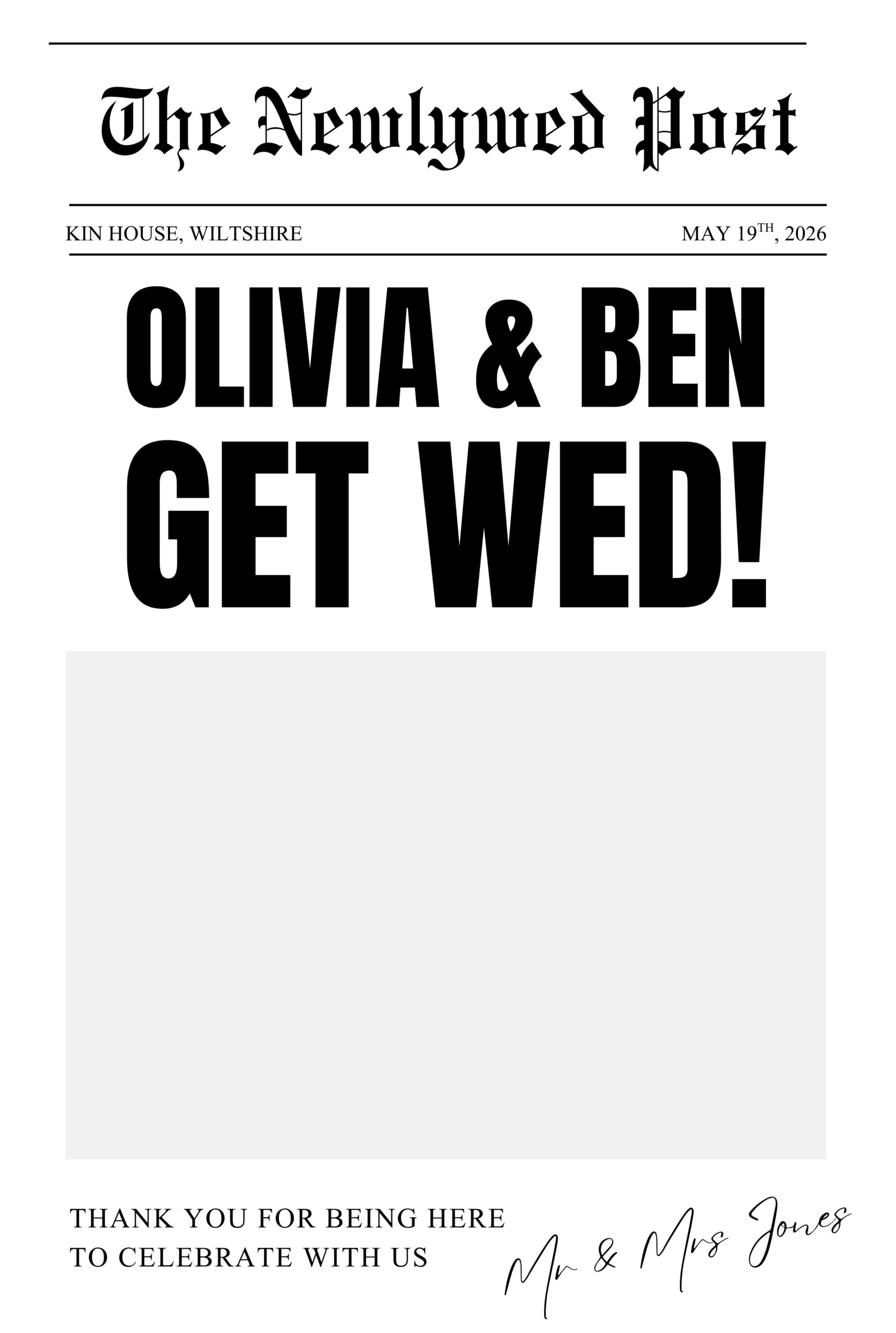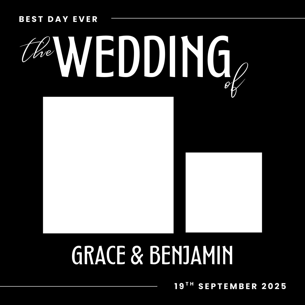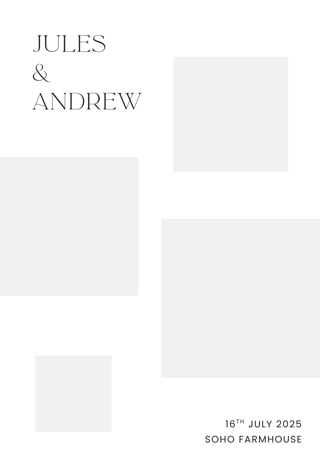 Simple, minimal, and elegant, these templates feature a single, full-page image with a subtle overlay of names, dates, or a monogram