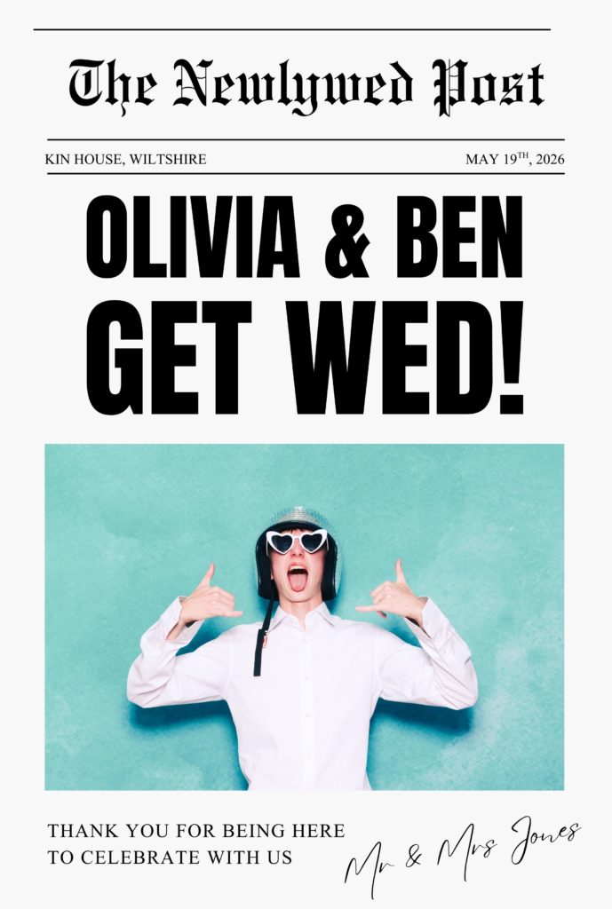 Introducing newspaper photo booth prints. Wedding newspapers are everywhere right now. You’ve probably seen them styled on tables, handed out during the drinks reception, or shared across Instagram and Pinterest. They’re personal, stylish, and feel different from traditional signage.