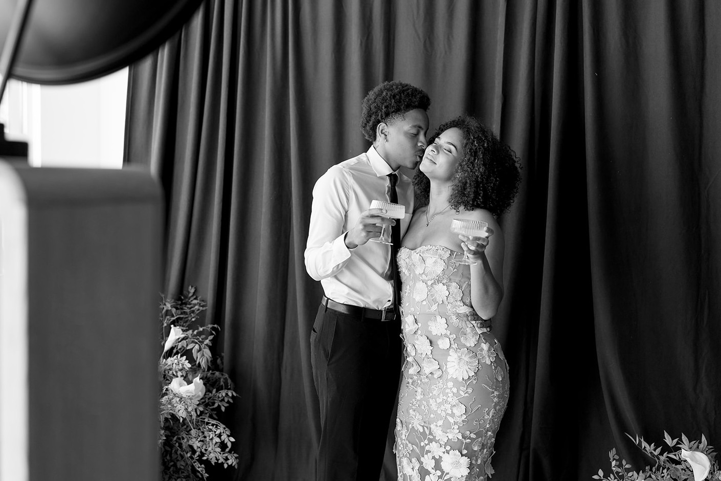 They step into the booth hand in hand, 100% ready for their couple moment. The first snap is a cute smile, the second is a nose nuzzle, and by the third, they’re in full rom-com montage mode. If there’s a heart-shaped prop, you already know they’re using it. You’ll either find this adorable… or aggressively third-wheel in the background.